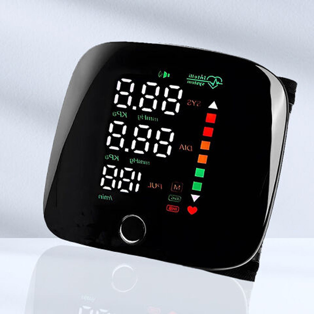 The adjustable wrist cuff is designed with comfortable materials that fit different wrist sizes, making regular monitoring a convenient experience for daily health tracking.