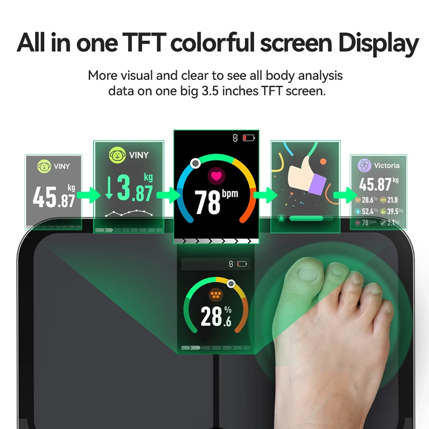 COMPREHENSIVE ANALYSIS Our smart scale measures 16 different body metrics including weight, BMI, body fat, muscle mass, and visceral fat, giving you complete insight into your body composition beyond simple weight numbers.